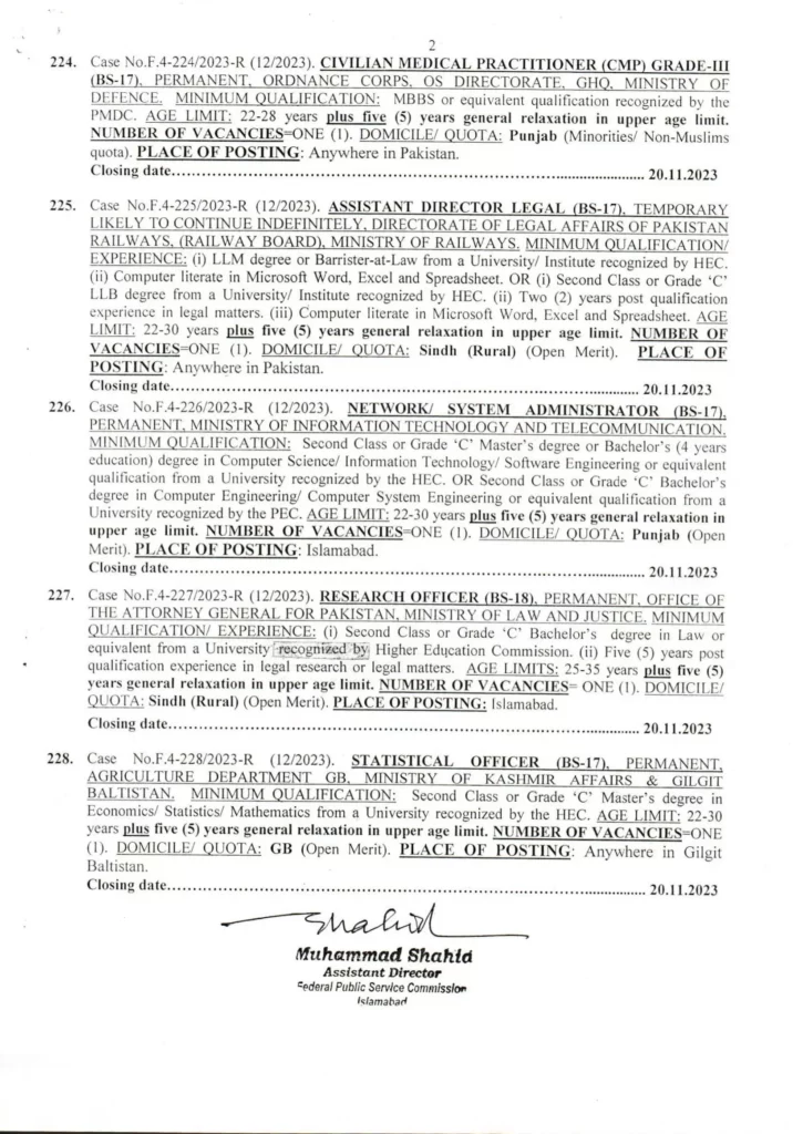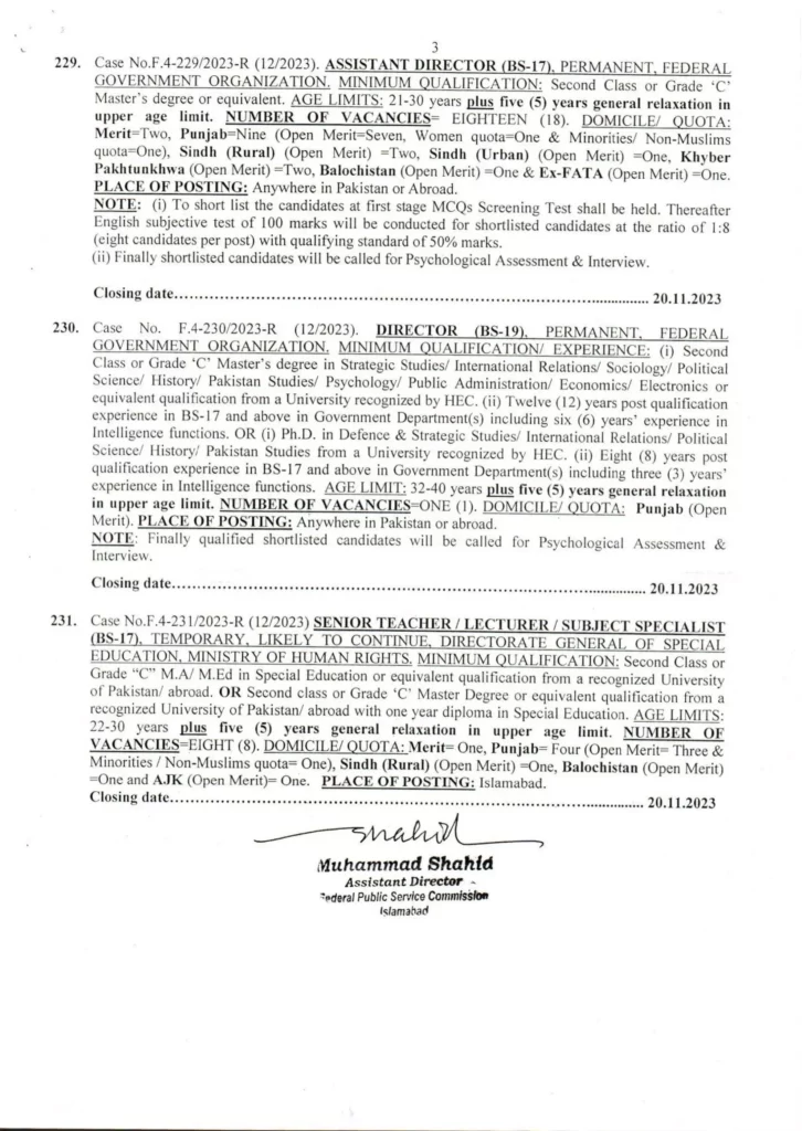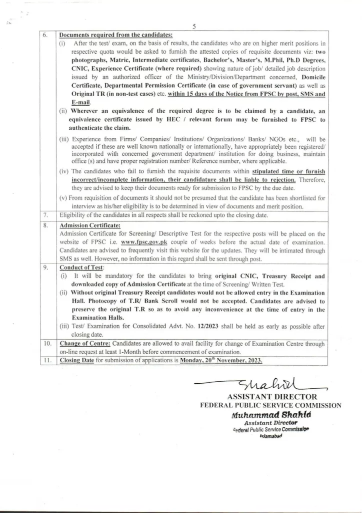 Federal Public Service Commission of Pakistan Latest FPSC Jobs 2023 Adverstiement 12. You can Apply Before the last date on Official Website of FPSC.